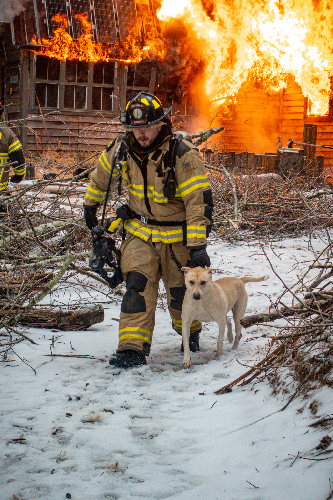 Crews focused on life safety, ensuring the successful evacuation of the structure, including a dog. Firefighters also worked to reduce additional hazards by securing propane tanks, generators, and gas cans from the immediate area.