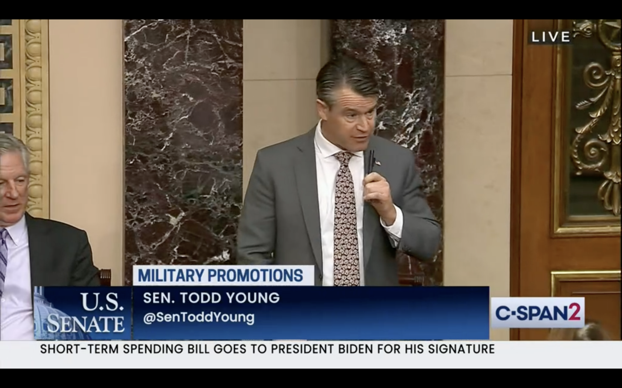 “Others will say, perhaps it’s dysfunctional. Perhaps there’s an effort to obfuscate. I don’t know what they’ll conclude. But I do know that I intend to continue reading through these brave patriots, class of 1995 U.S. Naval Academy graduates, who have been nominated to the grade of rear admiral lower half, and we are very proud of them,” Young said at roughly 1:30 a.m. Thursday.