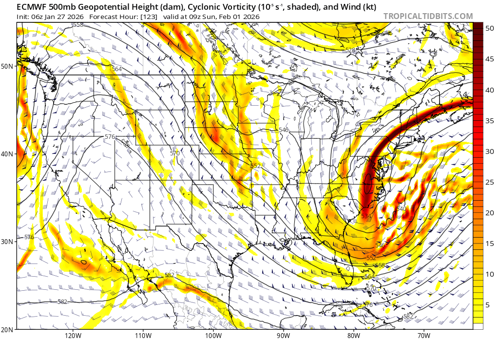 This system, and the trough associated with it, will likely result in another coastal low from Friday through Sunday. As this system drops down, it is expected to most likely “break off” and form an upper level low over the southeast. This will help drive the coastal low to strengthen off the coast. The big question becomes: where, if at all, does the upper low break off and where does the coastal low form. It doesn’t take a degree to see that the two charts below look radically different.