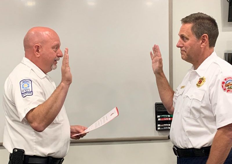 Even though he is assuming the position of Division Chief, Lefevre has been working with the department part-time since 2017. Following the oath administered by Director Murphy, Lefever’s wife Kathy joined Murphy in placing service pins on the new chief’s uniform.