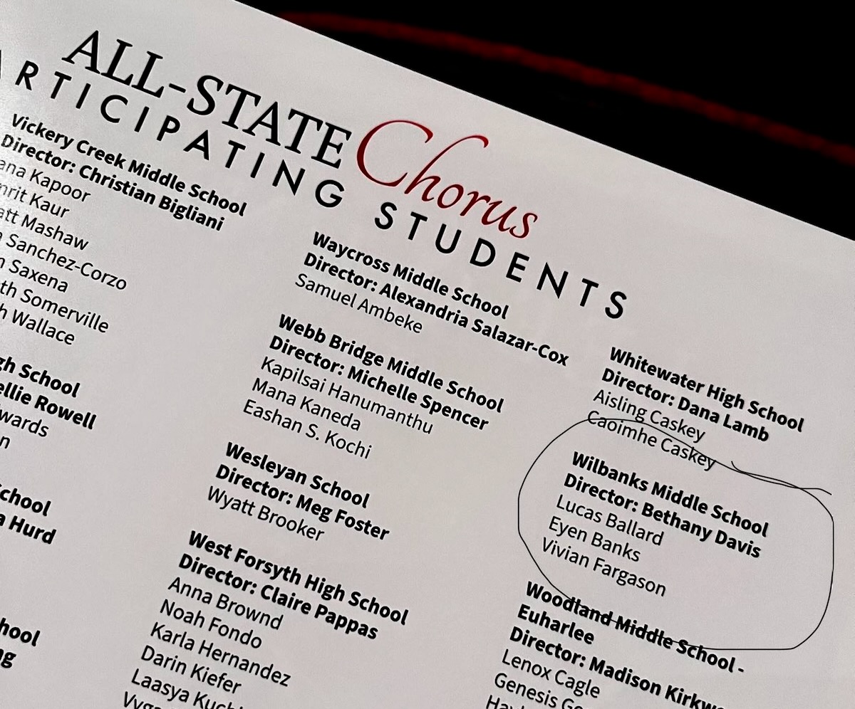 Circled are the three singers from Wilbanks Middle School who made this year’s All-State Choir. (photo submitted)