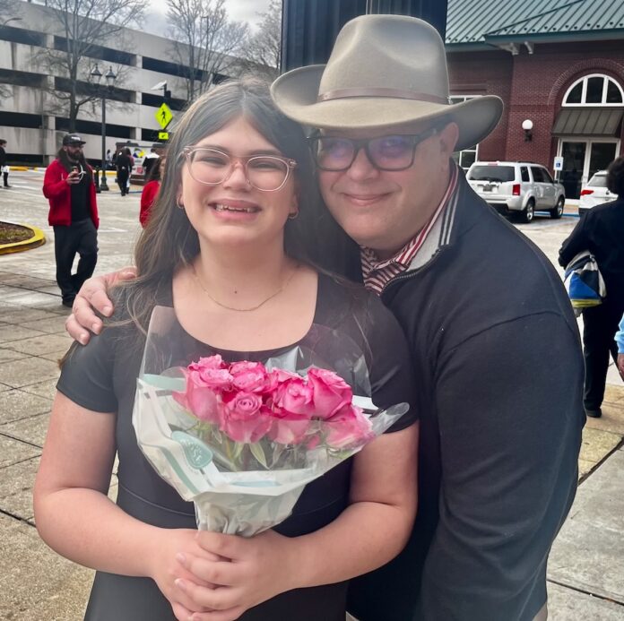 Wilbanks Middle School All-State Choir singer Vivian Fargason (left) and the proudest papa around. (photo submitted)