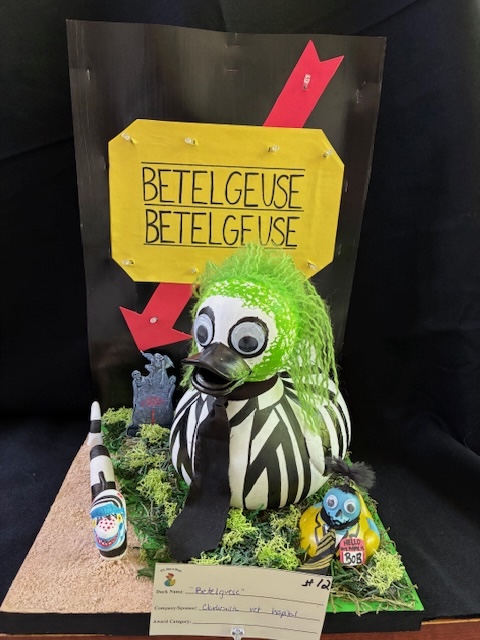 Clarkesville Veterinary Hospital claimed the coveted First Place People’s Choice with their spooky and humorous Beetlejuice-themed duck, cleverly named “Betelgeuse.” The design also earned 2nd Place Best Adult Book/Movie, proving to be a crowd-pleaser and a critical favorite.