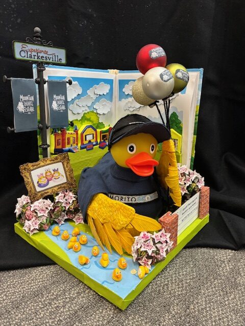 Morito Scovill’s action-packed duck “Quacker Chan’s Day at the Mountain Laurel Festival” delighted attendees and earned 1st Place Most Creative, a tribute to both martial arts and local culture.
