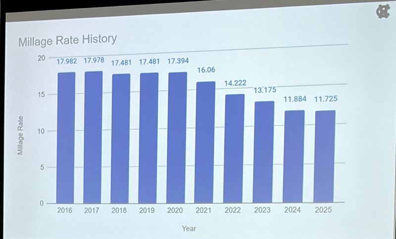 The rollback means that the education tax millage rate this year will be reduced from 11.884 mills to 11.725 mills.