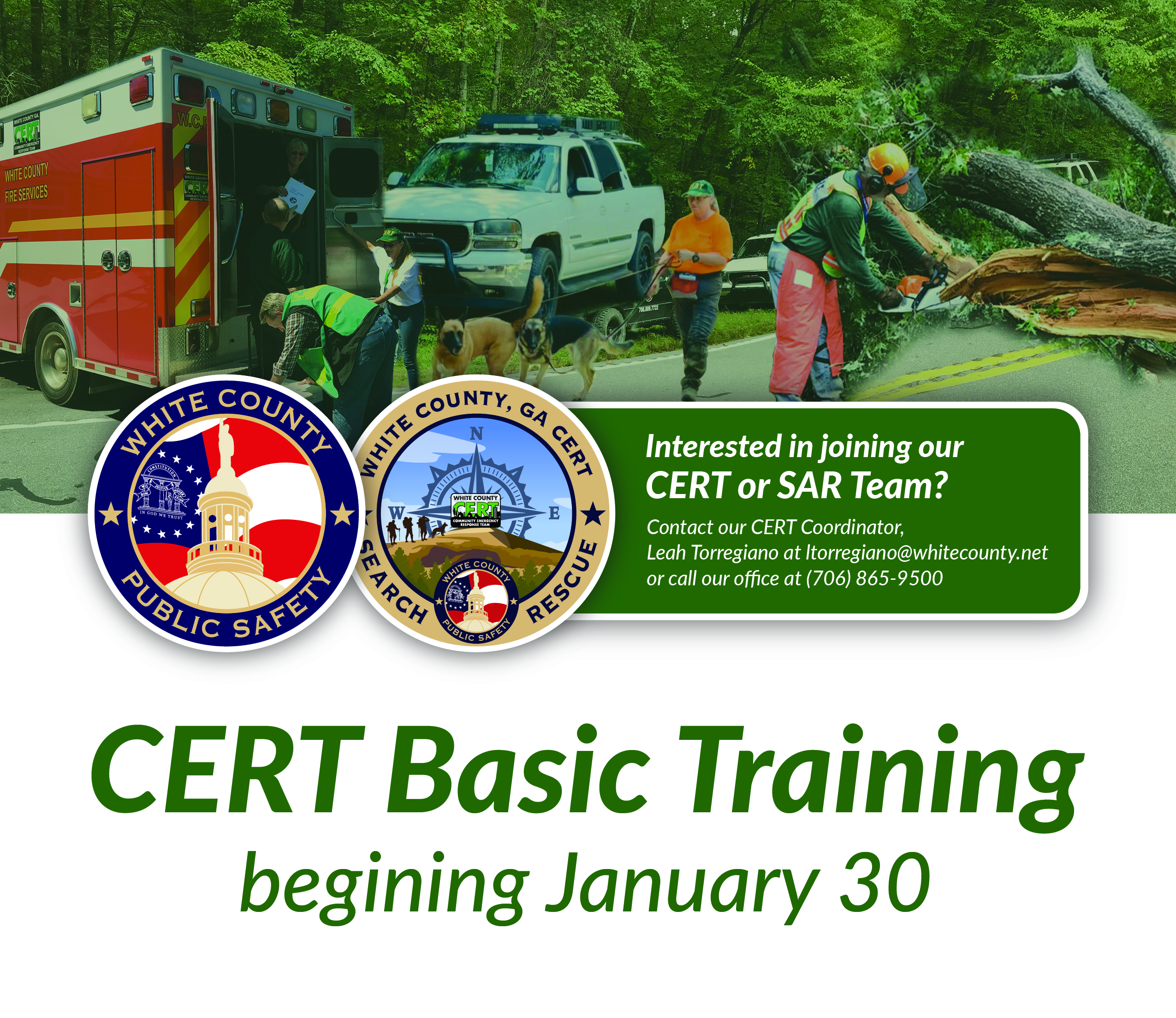 “CERT is an amazing opportunity of learning and fellowship,” says White County Public Safety Public Information Officer Bryce Barrett. “We look forward to meeting our neighbors!”