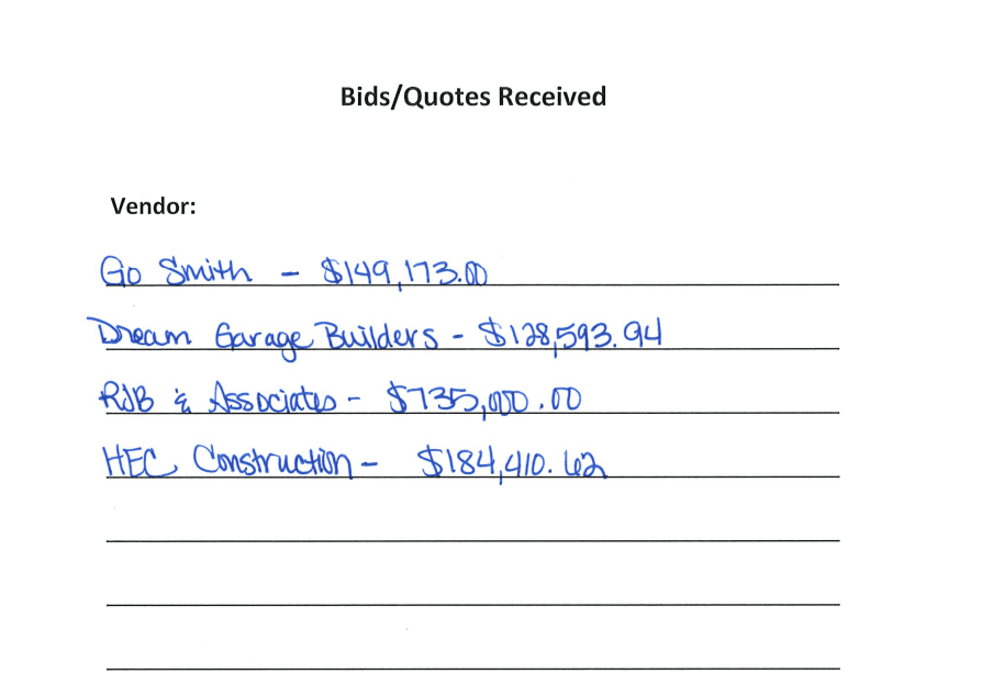 Public Safety Director David Murphy said they received four bids on the two projects. Dream Garage Builders’ bid was the lowest, at $128,593.94.