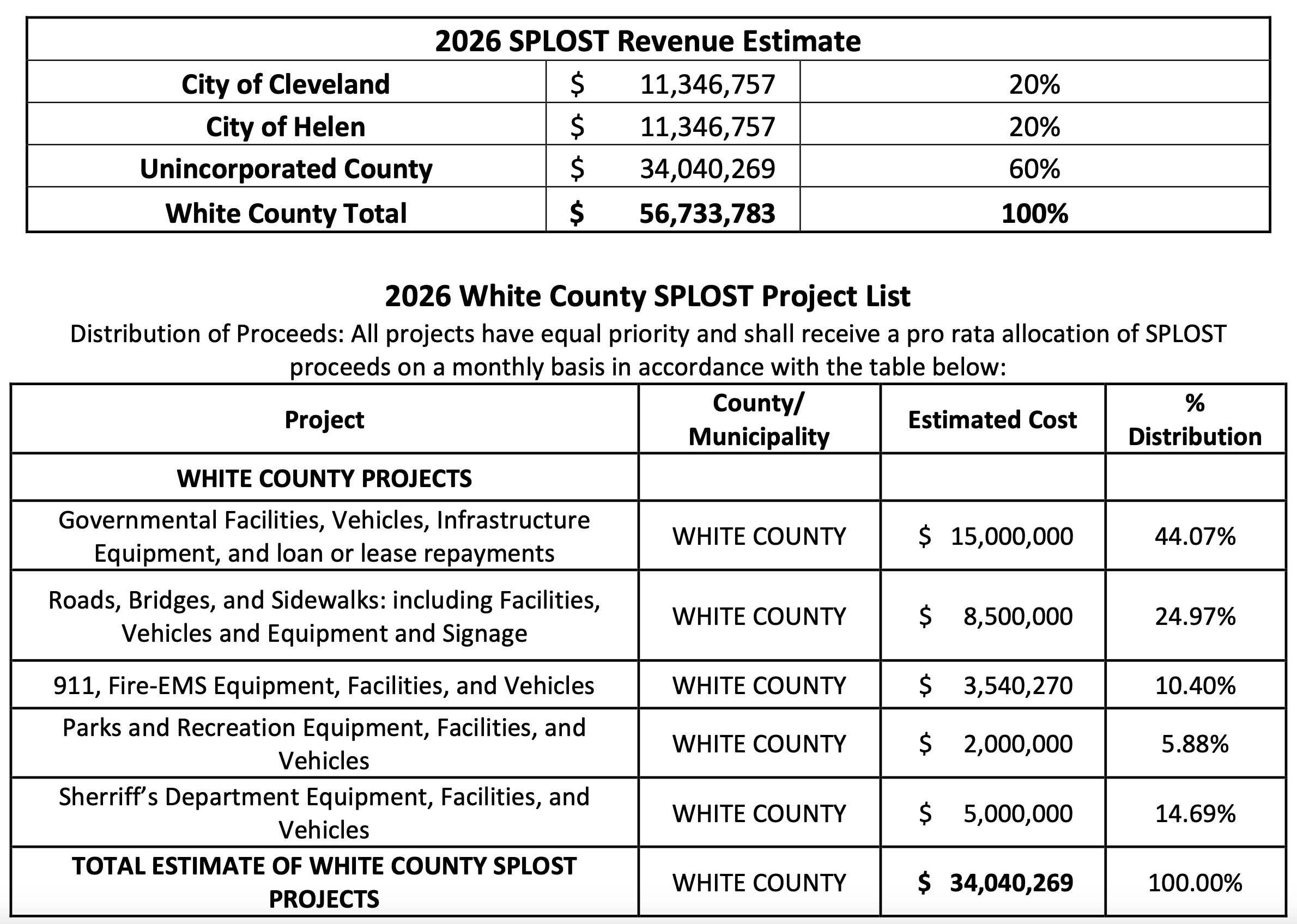 The county projects it will collect $56.7 million from the multi-year SPLOST. White County’s sales tax would be reduced by one percent if the penny-on-the-dollar tax is not approved.