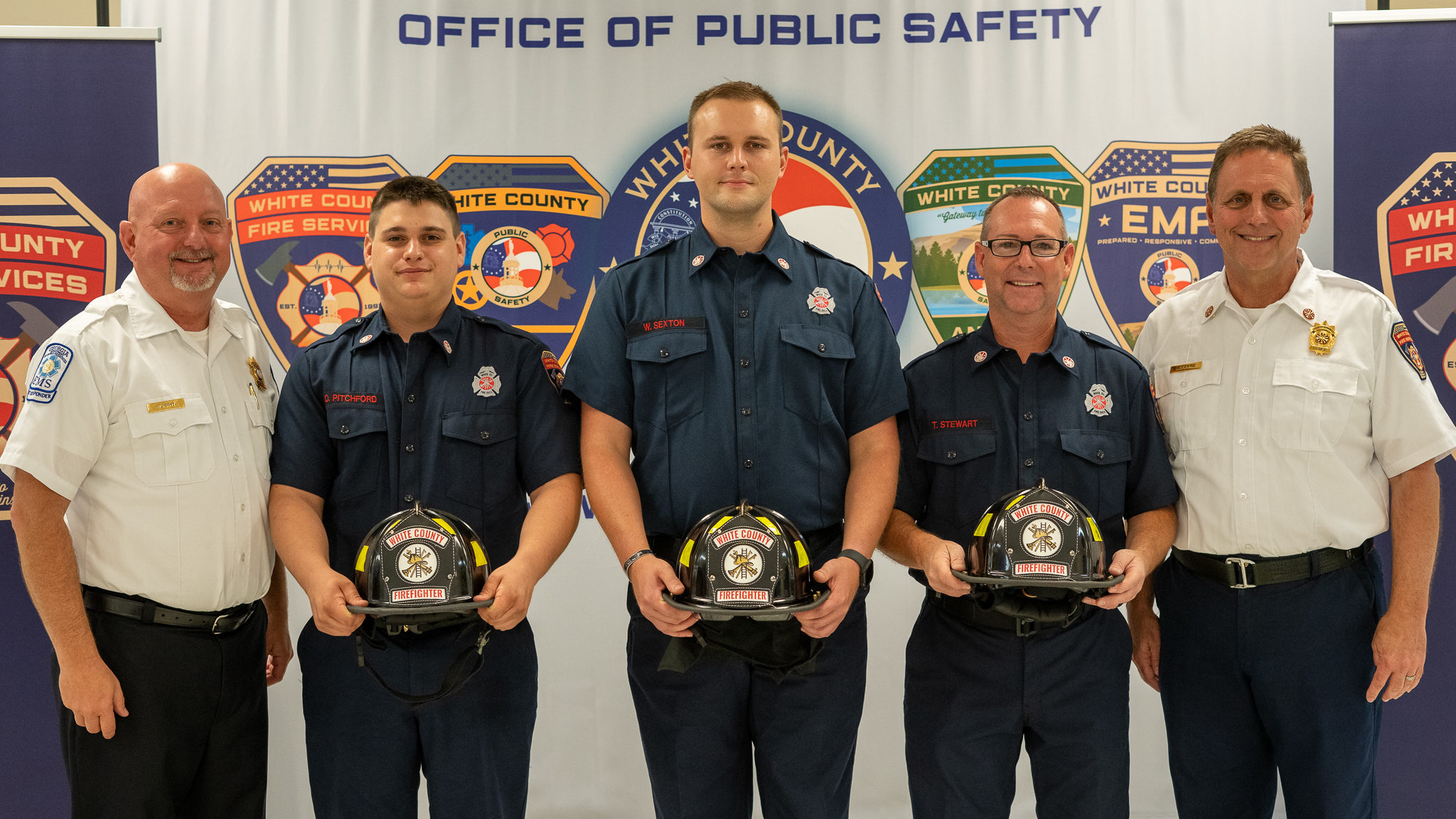 Four firefighter recruits are on the job in White County ready to put their newly-acquired skills into action. White County Public Safety held a graduation ceremony Tuesday night for Kyleigh Johnson, Owen Pitchford, Will Sexton, and Terry Stewart.