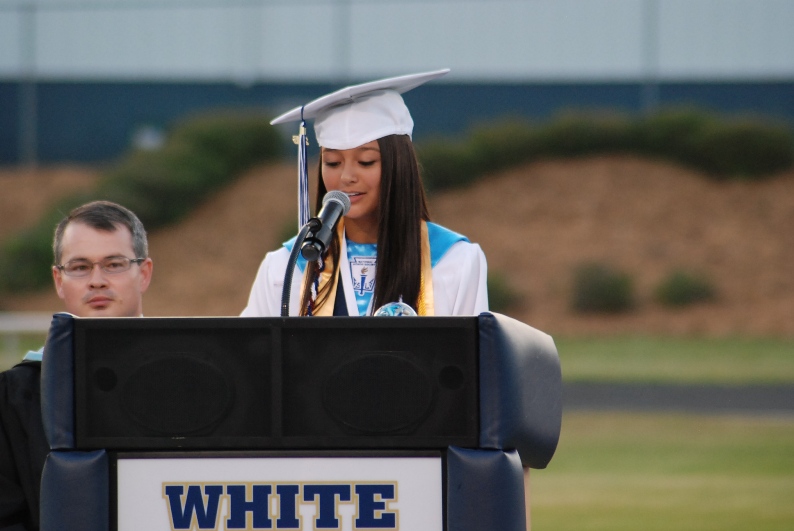 (Cleveland)- One of the largest crowds in recent memory filled the White County High School Stadium Friday night to witness the next step in the lives of 257 graduating seniors from the school. During the ceremony, prior the presenting of diplomas, Madison Pollitt the class Salutatorian quoted from the Bible Jeremiah 29:11 and then told her fellow classmates, “Everything will unfold according to his plan, just be conscious that is your choice to either (a) live your life simply going through the motions or (b) make intentional choices that you truly make a difference in this world.”