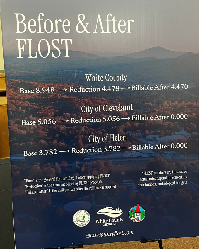 Cleveland City Manager Kevin Harris said, “So many people come here to Helen and to Cleveland and to White County, and the sales taxes they bring here, they could be directly beneficial to lowering your property taxes. So it was just a good opportunity to show really what this FLOST is, how it could work, and how it could save money in future tax bills.”