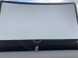 The school hosted a drive-in-theater-style ceremony Friday night. The county rented a massive inflatable outdoor movie screen and the school bought an FM transmitter so that students could listen to the ceremony on their car radios.