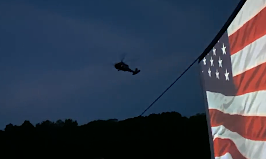 The evening began just before dusk. Seniors parked in assigned spaces that were staked out with yard signs with their names and pictures printed on them. They parked in the same order in which they would have lined up in the stadium. The band played pomp and circumstance. The chorus sang the school’s alma mater. And a Blackhawk helicopter did a flyover during the National Anthem.