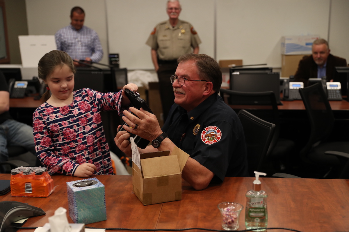 White County Fire Services honored Newberry and Alexander during the socially-distanced ceremony Monday at the White County Emergency Operations Center. Weaver was pinned as the new chief in front of his peers, family, and elected officials.