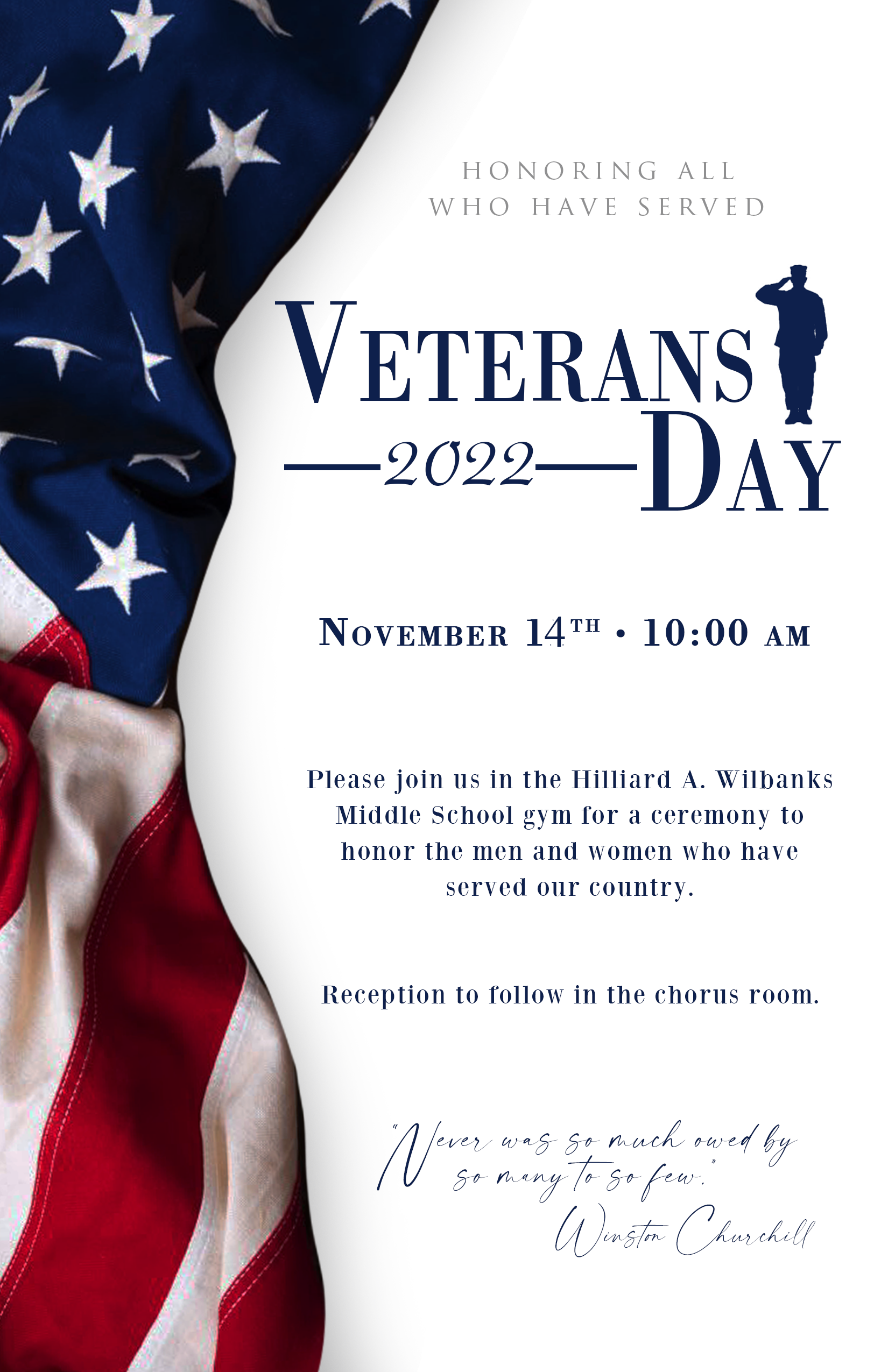 Hilliard Wilbanks Middle School in Demorest has rescheduled its Veterans Day Program for Monday, November 14. Principal Chris Chitwood says the event will start at 10 a.m. in the school gymnasium. It will be followed by a reception for veterans and their families.