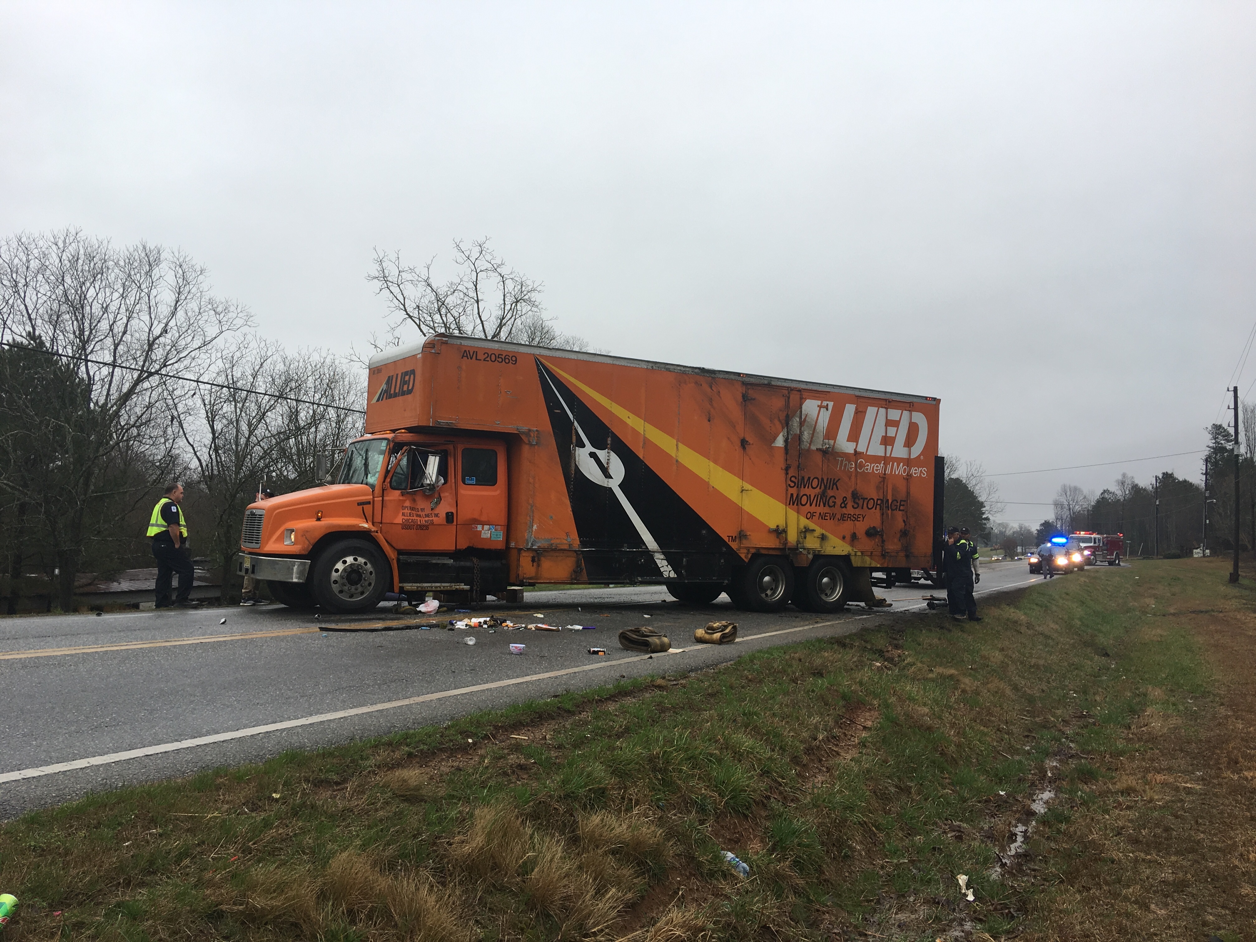 The driver, 50-year-old Kenneth C. Wright of Lumberton, New Jersey, pulled the truck back onto the road and traveled across the center line. He overcorrected, causing the truck to lose traction on the wet pavement, according to TPR Trent Kirchhefer of Patrol Post 7 in Toccoa.