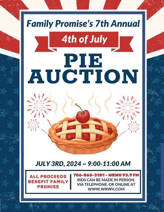 This Wednesday, July 3, the station will hold its seventh annual Fourth of July Pie Auction live on the air. Friends of Family Promise and local businesses are donating pies to be auctioned off on the radio and online.