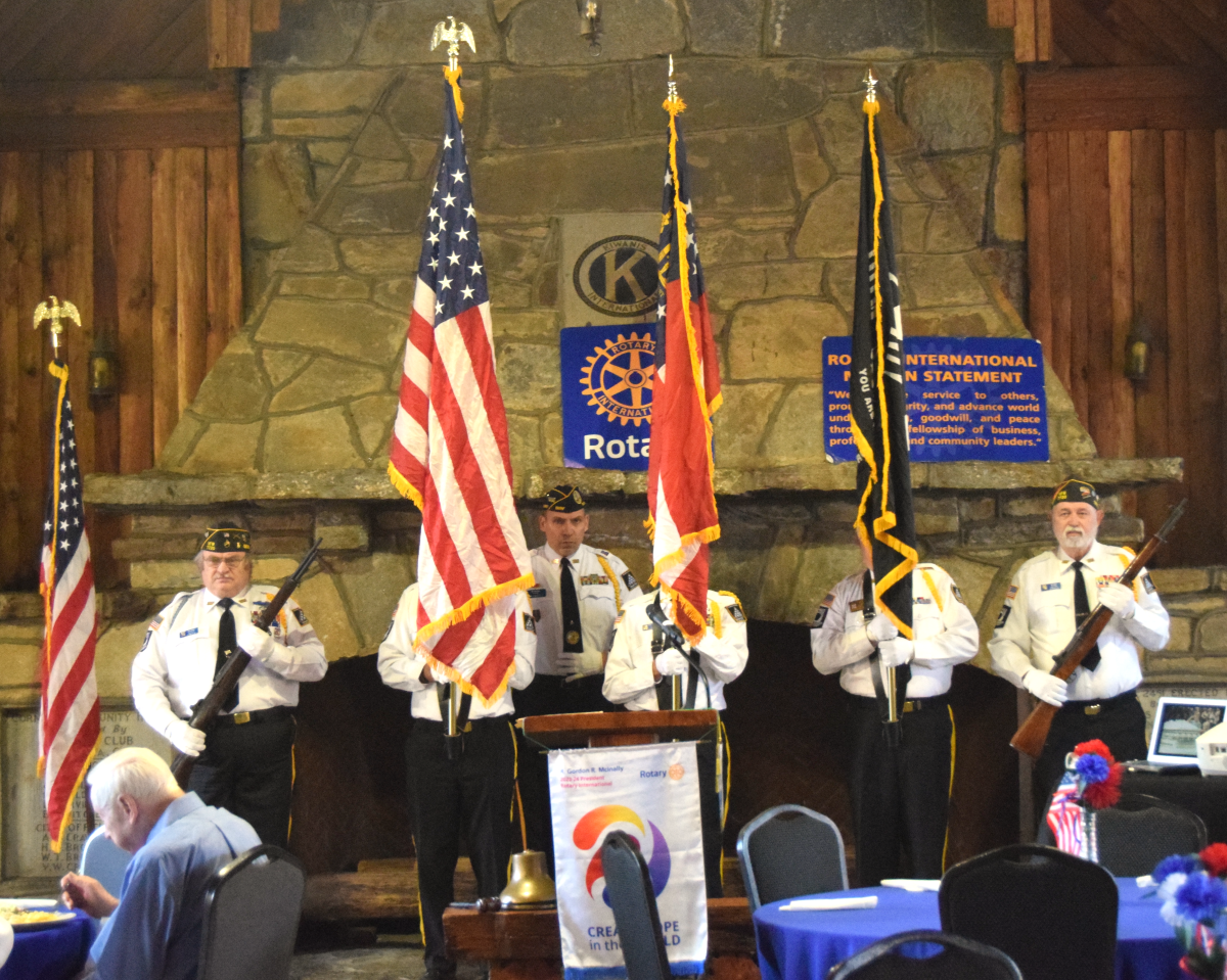 Rotary Club President Bradley Cook prepared the meeting as a special presentation in honor of Veterans Day. On hand were honor guard members from the Grant-Reeves VFW Post 7720 to present the colors while Caleb McAllister sang the National Anthem.